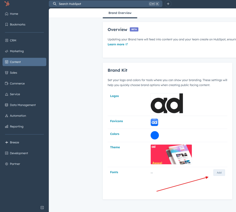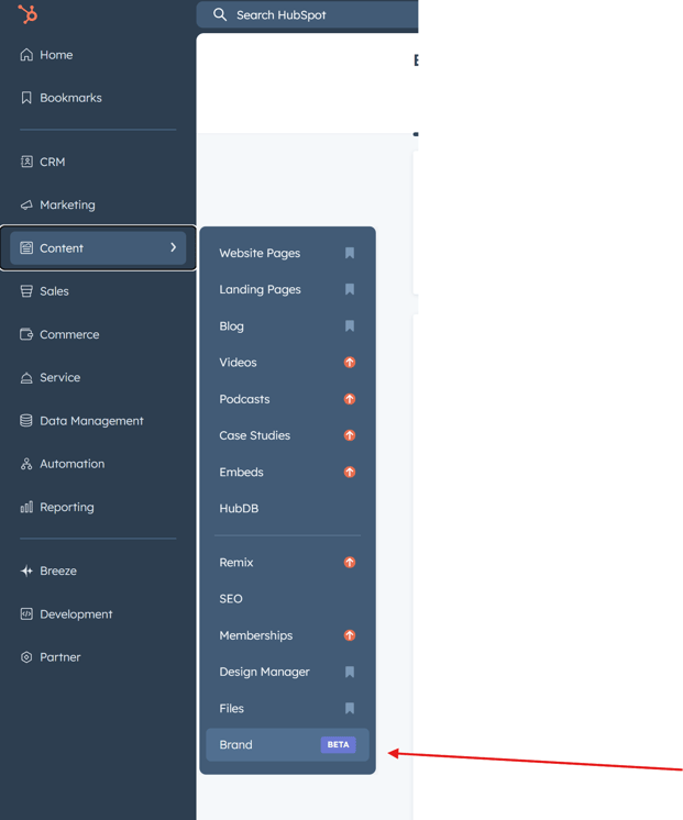Step 2: In your HubSpot portal, Go to Content > Brands