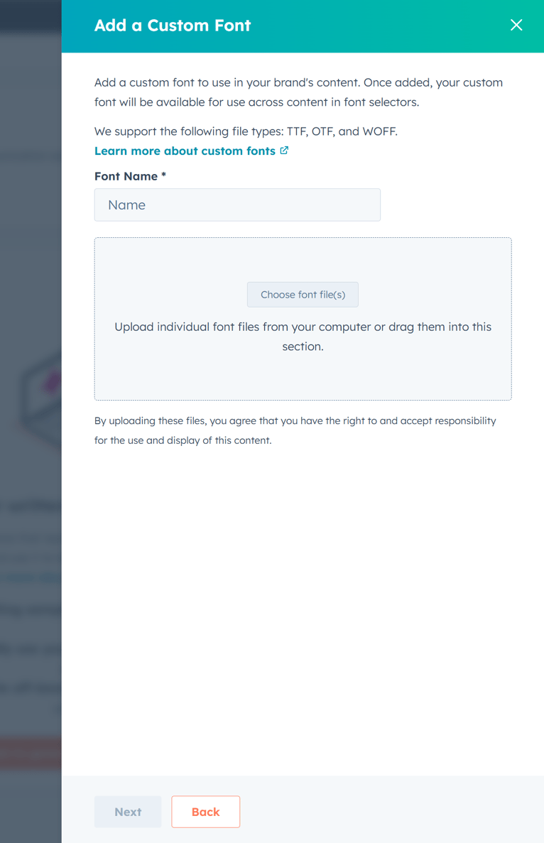 Before you begin, make sure you have all the font files you want to use ready and organized. This includes the correct formats (such as .woff or .woff2) and all required font weights and styles. Having everything prepared upfront will make the setup smooth once you start selecting fonts in HubSpot.